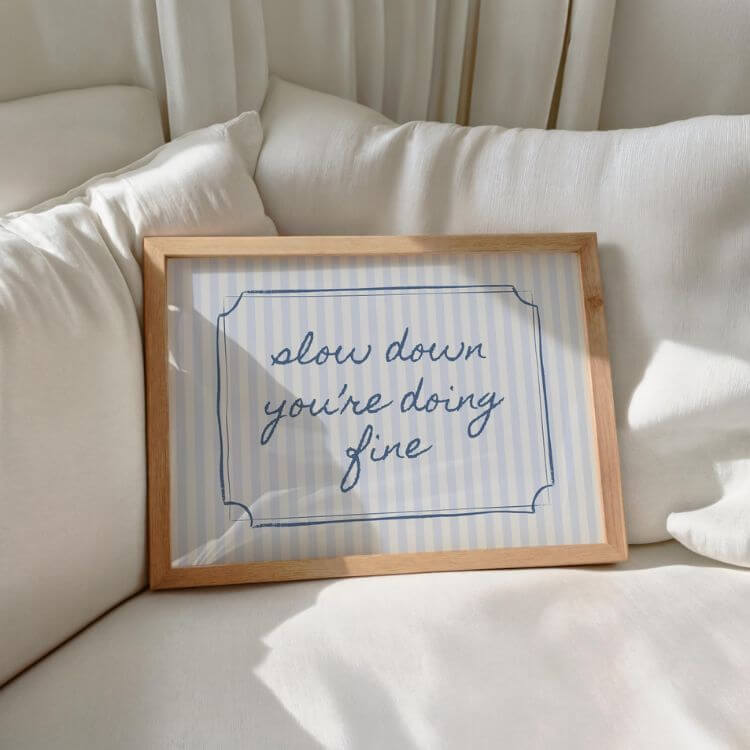 Cute decor that also doubles as a gentle reminder to take a breath during the work day? Done. Something to set the vibes and tone of your space, this wall art print brings an aesthetic, while also prompting a mental refresh when you need it.