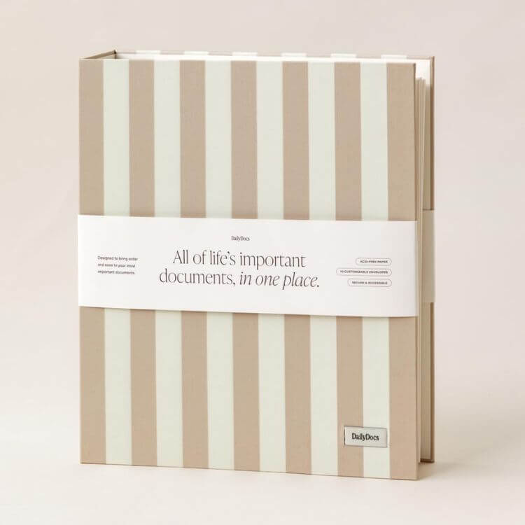 Upgrading from those plastic organizer folders is one small yet mighty way to still keep the chaos contained. By using this striped organizer, your workspace can breathe a little better knowing everything is all in once place (and looks good too).