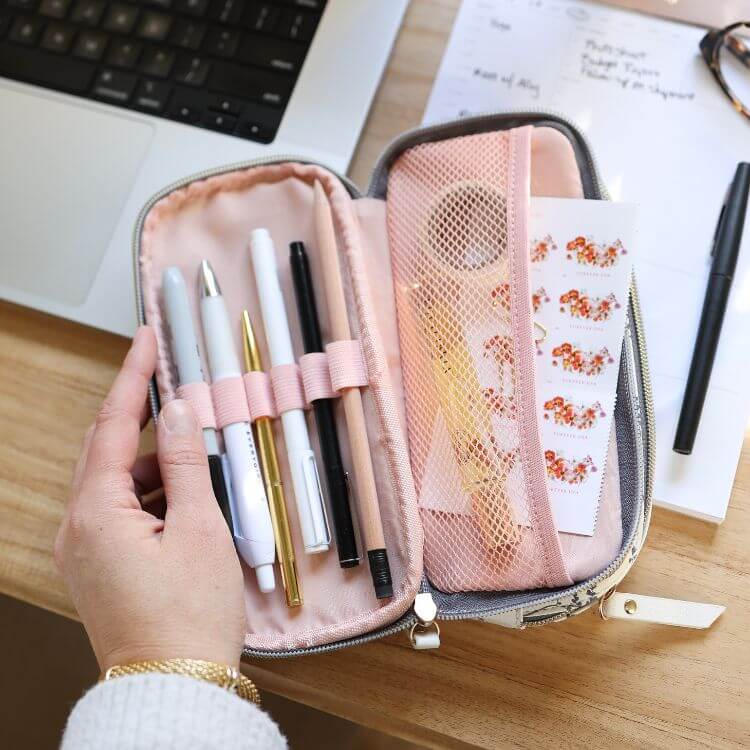 If you love taking your work setup in and out of coffee shops, having a go-bag for your little essentials is a fun way to romanticize the 9-5 grind. Keeping pens, stickers, highlighters, and notepads all in one place will make you feel like you have it together, even on chaotic days.