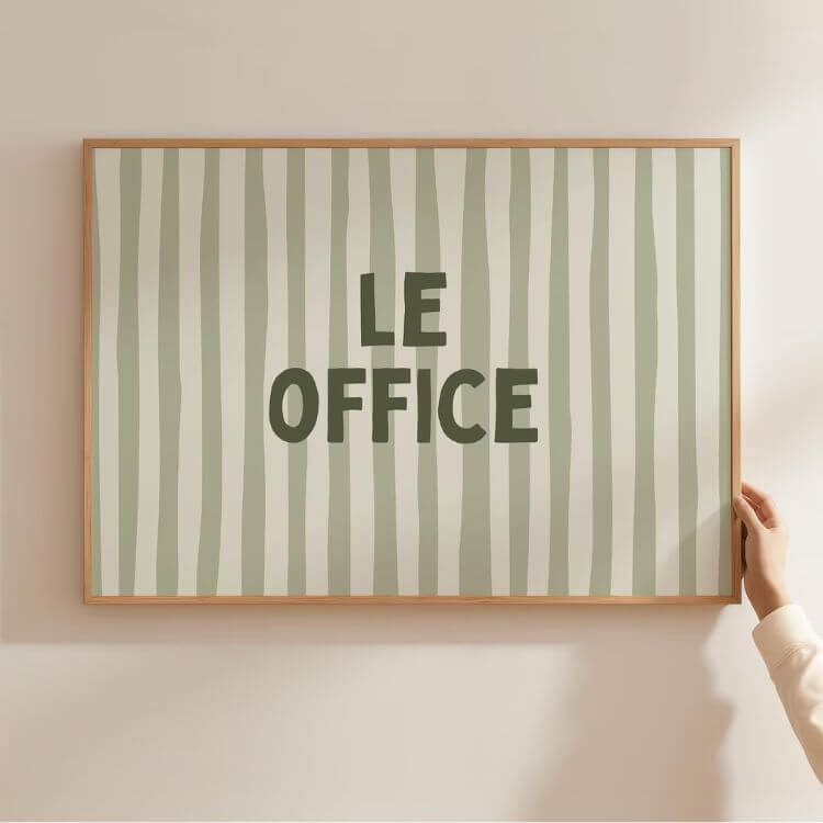 A little wink to your office space, this green “le office” print adds the perfect little touch of color. Plus, it makes your desk space feel a bit more playful and unique.